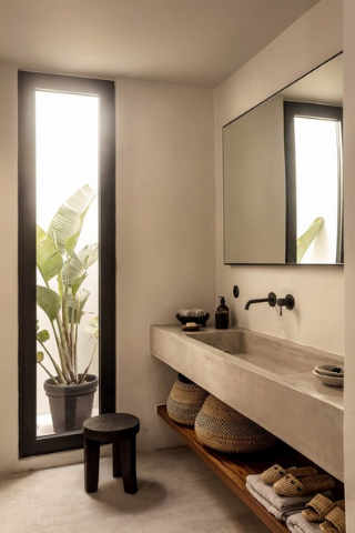 Pour un style uniforme et unique, n’hésitez pas à privilégier le tadelakt ou le béton ciré, matériaux modernes et résistants par excellence.