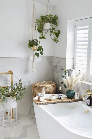 Plantes vertes et formes organiques viennent parfaire la décoration de votre salle d’eau. Elles apportent davantage de couleur et de fraîcheur à votre intérieur.