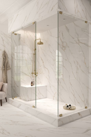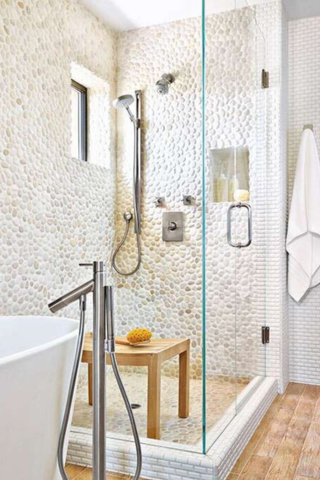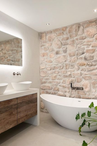 Grâce à sa texture poreuse, elle régule à merveille la température et l’humidité de votre salle de bain. Vous pouvez l'allier avec le bois pour créer une pièce authentique.