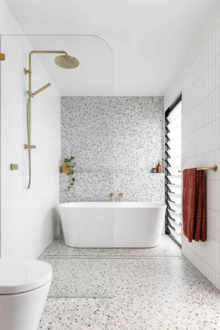 Associé autrefois à des accessoires anciens, il revient à la mode pour un rendu très chic. Il apporte raffinement et élégance dans notre déco intérieure. Pour une salle de bain moderne, vous pouvez ajouter de subtils accessoires en laiton.