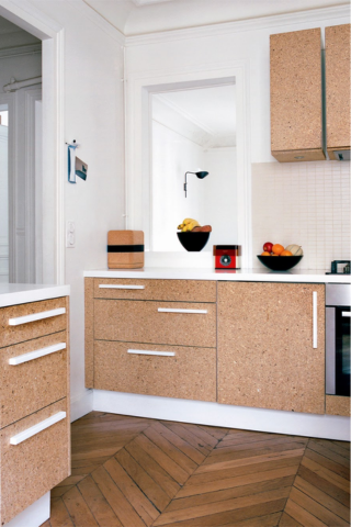 Matériau incontournable dans les années 70, le liège revient sur le devant de la scène. Écologique, résistant et facile à entretenir, il habille à merveille les façades des meubles et apporte un côté rétro très apprécié.