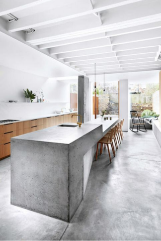 Le béton ciré en cuisine est très prisé. Clair, foncé, taloché, en façade ou en plan de travail, il confère un côté brut et authentique qui séduit les amateurs d'ambiances industrielles.
