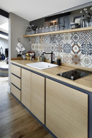 Au sol ou au mur en guise de crédence, les carreaux de ciment sont très à la mode. Ils sont très résistants et offrent une multitude de motifs et de couleurs.