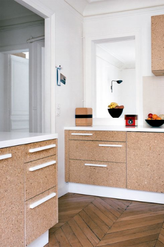Matériau incontournable dans les années 70, le liège revient sur le devant et convient parfaitement dans la cuisine.