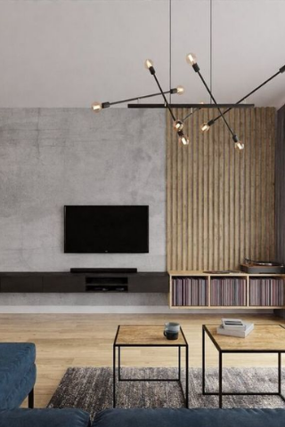 Le bois et le béton s’allient pour une décoration pleine de cachet. Par exemple, vous pouvez associer votre mur en béton avec un sol et des meubles en bois.
