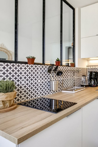 Une crédence en carreaux de ciment apporte du cachet à votre cuisine. Pour un rendu original, choisir celle avec des formes géométriques est une excellente option.