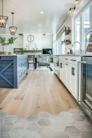 Très décoratif, le mélange de ces deux matériaux vous permettra de donner libre cours à votre imagination: forme hexagonale, parquet stratifié... Vous pouvez les utiliser dans votre cuisine afin de délimiter les différents éléments de la pièce.