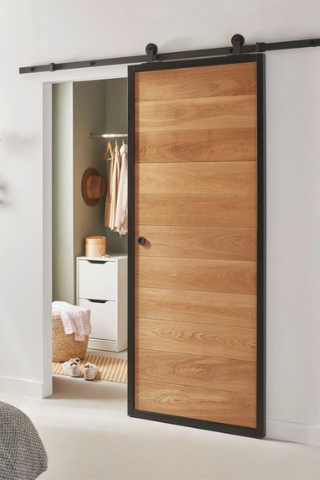 La porte en applique est également coulissante, mais reste apparente. Il faut qu’elle soit esthétique pour un rendu décoratif.