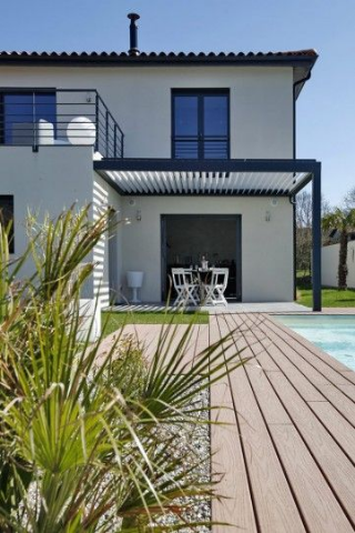 Très tendance, la pergola bioclimatique diminue l’impact du vent, de la pluie et de la chaleur grâce à ses lames orientables. Vous pouvez l’adosser à votre façade pour garder votre intérieur au frais.