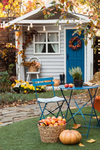 Un jardin en automne peut être chaleureux et accueillant. Ajoutez des plantes de saison comme les bruyères, cyclamens ou chrysanthèmes. Une guirlande lumineuse, quelques lanternes et votre extérieur reste un vrai lieu de vie.