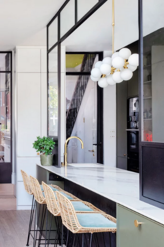 Une verrière semi-ouverte posée sur le plan de travail, vous permet de créer un mini-bar ou un lieu pour prendre votre petit-déjeuner. Très tendance, elle optimisera l’espace et la décoration de votre cuisine.