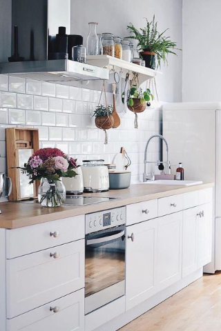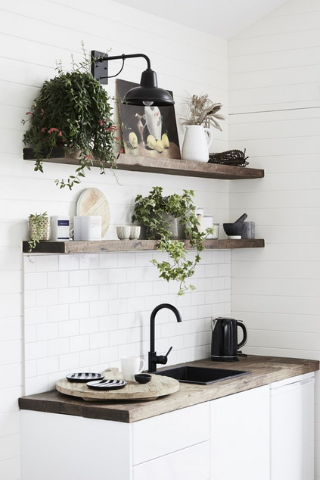 Afin d’améliorer le volume et l’organisation de votre pièce, pensez à utiliser les murs de rangement et à combiner les éléments ouverts et fermés. Cette année, les couleurs mates l’emportent avec un retour à la cuisine traditionnelle et fonctionnelle.