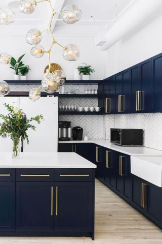 Le bleu foncé, le prune, le vert sapin, le jaune moutarde et le terracotta sont les couleurs tendances en 2021. Pour parfaire votre cuisine, pensez aux couleurs foncées de manière prononcée ou par petite touche : elles apportent un certain cachet à votre intérieur.