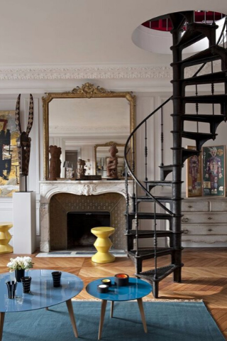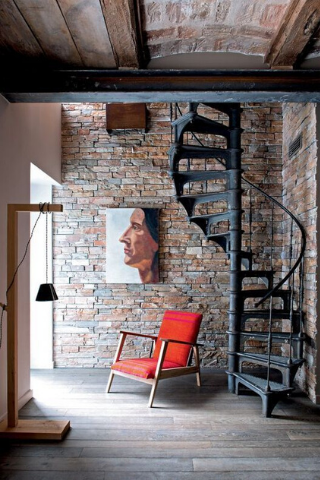 L’escalier en colimaçon en métal séduit beaucoup de part son design et ses courbes arrondies. En effet, il s’adapte parfaitement aux petits espaces et permet un gain de place important. Il doit être réfléchi et bien placé pour apporter plus de légèreté et de modernisme à la pièce. Pour accentuer l’effet industriel et révéler tout son charme, il sera parfait prêt d’un mur en briques rouges.