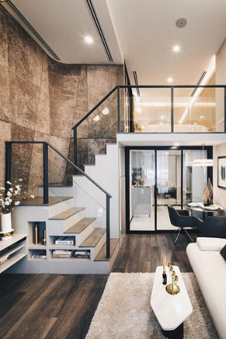 Le loft dispose souvent d’une belle hauteur sous plafond et d’un large espace dans la pièce de vie, l’escalier devra donc être visible dès le premier coup d’œil. Avec des mélanges de matières comme le métal et le verre, vous apporterez un côté épuré et sophistiqué àvotre pièce.
