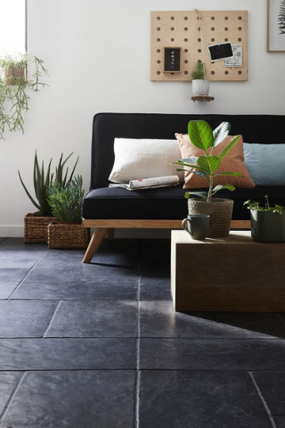 Pour un salon contemporain avec du caractère, une imitation en grès cérame au sol apportera à votre intérieur une touche originale et unique.