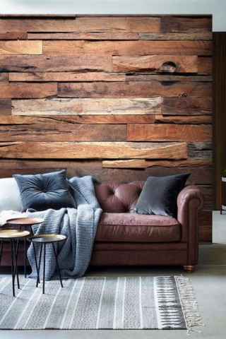 Le parement de bois est un élément de décoration très en vogue, cependant son prix est souvent élevé et son installation contraignante. Il existe aujourd’hui de nombreux papiers peints qui reproduisent à la perfection le bois pour un trompe l'oeil réussi.