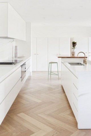 En bois clair, brut, teinté, patiné ou peint, toutes les essences s’invitent dans la cuisine afin de réchauffer ce lieu convivial où nous passons une bonne partie de notre temps. On peut aisément l’associer à d’autres matières brutes comme l’inox, le béton, la brique et le marier à différentes couleurs.