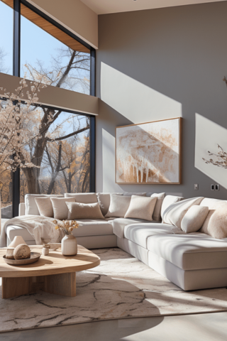 Couleur neutre par excellence, elle s’invite dans votre salon. Dans une nuance plutôt foncée, l’idéal est de l’allier avec les couleurs claires afin d’illuminer votre intérieur.