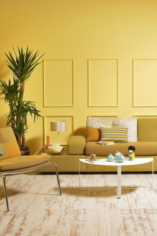 Couleur chaleureuse et lumineuse, elle apporte énergie et vitalité à votre déco. En effet, elle donne l’illusion que votre pièce sera plus grande qu’elle ne l’est en réalité. Pensez à l’incorporer avec parcimonie sur un pan de mur pour garder une déco harmonieuse.