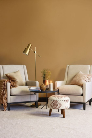 La nuance caramel revient sur le devant de la scène. Elle se marie à merveille avec le beige ou le blanc cassé.