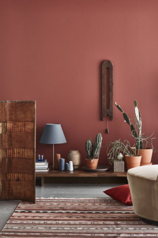 C’est l’idéal si vous aimez les nuances feutrées et que vous disposez d’un bon éclairage. Le rouge terreux est votre allié pour un intérieur particulièrement chaleureux.