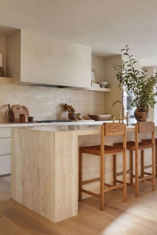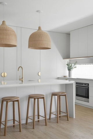 On préfère les accessoires design et naturels dans notre cuisine cette année. Les poignées discrètes pour les étagères, les suspensions grand format en rotin ou en bambou et les rangements intelligents sont au rendez-vous.