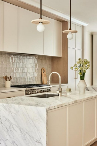 Le beige revient sur le devant de la scène! Il se mêle subtilement au marbre pour le sublimer et s’adapte facilement à tous les styles de décoration.