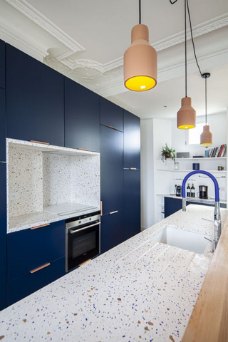 Qu’il s’agisse de recevoir la famille et les amis ou de réaliser de bons petits plats, la cuisine est une pièce maîtresse de votre habitation. Chaque jour nous passons davantage de temps dans cet espace, ainsi l’envie de nous y sentir bien devient primordiale. Couleurs phares, marbre veiné, luminaires artistiques… Devis.ch vous emmène au cœur des tendances 2023 pour votre cuisine.