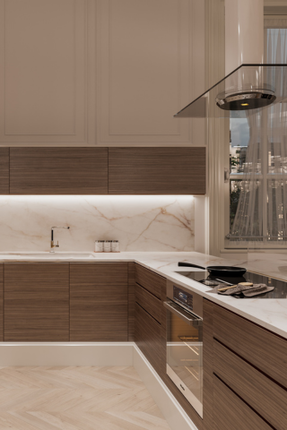 Symbole d’élégance, le marbre reste incontournable. En crédence ou en plan de travail, il habille la cuisine avec caractère et sublime immédiatement l’espace.