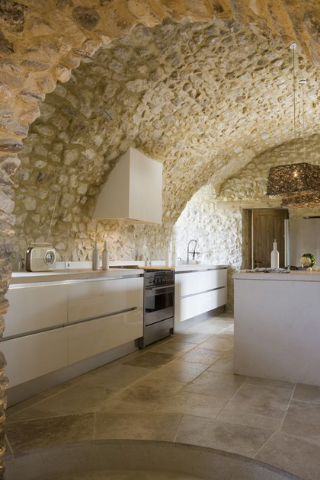 Pour cuisiner au frais et en toute tranquillité, vous pouvez agencer votre cuisine au cœur de votre sous-sol. Grâce à cette nouvelle pièce, vous gagnerez plusieurs mètres carrés. Un plafond voûté en pierres claires accompagné d’une cuisine dans un ton clair donnera un certain charme à votre intérieur.