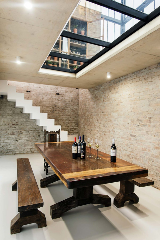 Pour une création originale, optez pour la salle à manger au sous-sol. Pour entretenir facilement votre surface, l’utilisation du béton ciré est idéale. Pensez à ajouter des puits de lumière afin de développer au maximum la lumière naturelle.