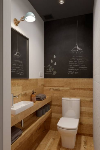 Si vous souhaitez, laisser des messages à votre famille ou rédiger des notes, vous pouvez agencer une ardoise sur une partie du mur de vos toilettes. Pensez à ajouter du bois naturel sur l’autre partie, celui-ci développera le cachet de votre pièce.