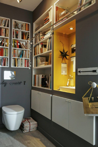 Si vous aimez la lecture et que vous disposez d'une grande surface, vous pouvez créer une bibliothèque dans vos toilettes. Ainsi, vous apporterez une touche déco et rendrez cette pièce plus agréable et originale.