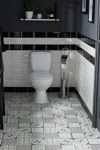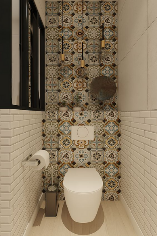 Les carreaux géométriques embellissent à merveille vos toilettes. De nombreux motifs existant, vous aurez un large choix : motifs floraux, orientaux, des rosaces...Pour harmoniser au mieux les couleurs, pensez à utiliser sur vos murs des teintes similaires à celles de votre carrelage.