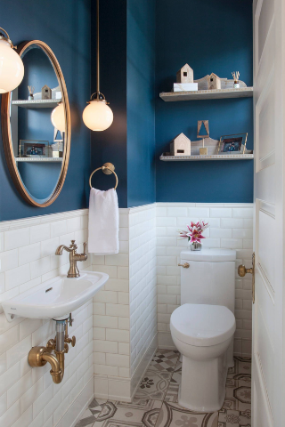 Si vous aimez les contrastes, choisissez un mur bicolore. Il s’agit d’utiliser deux couleurs pour l’ensemble des murs. Vous pouvez mélanger différents matériaux comme le carrelage et la peinture par exemple. Les couleurs chaudes seront idéales pour apporter du peps, les teintes foncées donneront un côté plus sobre à vos toilettes.