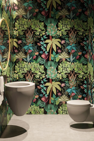 Si vous recherchez davantage une ambiance jungle, le papier-peint panoramique avec des motifs inspirés de la forêt tropicale sera parfaitement adapté. Choisissez de disposer celui-ci sur l’ensemble des murs de la pièce ainsi, vous serez plongé dans ce sublime décor.