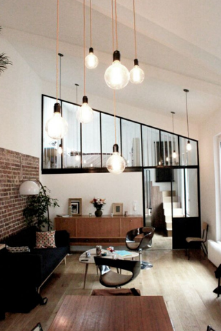 Si vous n’avez pas la possibilité de créer une verrière ou des grandes ouvertures, vous pouvez utiliser des luminaires XXL pour rendre la pièce lumineuse.