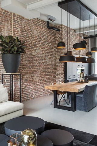 Les matériaux bruts sont très utilisés pour le style loft, notamment la brique. Chaleureuse et conviviale, la brique pourra mettre en valeur l’espace de votre intérieur et lui donner une touche industrielle.