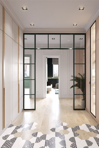 Pour équilibrer le tout, là encore un sol en carreau de ciment peut être une excellente idée pour faire de votre couloir une véritable galerie d’art. Ces motifs graphiques donneront une touche d’originalité à cet espace très souvent neutre et oublié.