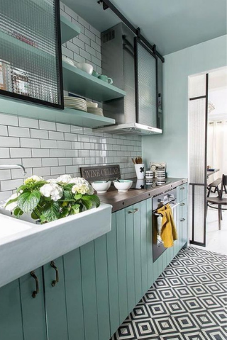 Souvent appelée le cœur de la maison, la cuisine demande également une attention particulière. Une déco graphique peut très bien s’y faire au vu de sa polyvalence, vous pourrez adapter une combinaison de peinture afin d’obtenir une succession de motifs bien soignée.