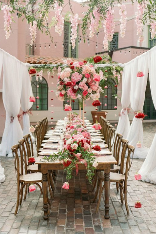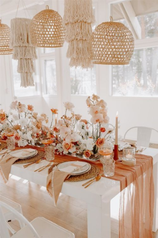 Elles proposent un décor très naturel et moins travaillé. Pour sublimer votre table, optez pour des fleurs de couleurs roses ou rouges.