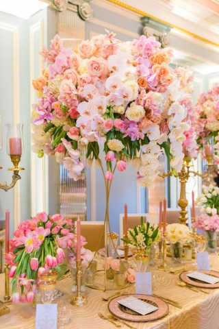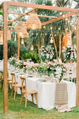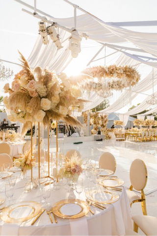 Cette année, les grandes structures reviennent sur le devant de la scène. Pensez à ajouter des petits bouquets sur les tables, ils dynamisent l’ensemble de la déco.