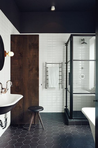 Si vous ne souhaitez pas adopter une salle de bain entièrement noir, vous pouvez malgré tout adopter cette couleur par petite touche, en optant pour des meubles noirs, des accessoires noirs comme le pommeau de douche ou les contours du part douche.