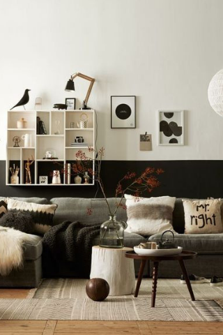 Si vous décidez que le noir sera la couleur principale de votre salon, il ne faudra pas peindre toute votre pièce, un seul mur suffira. Si vous avez peur, vous pouvez créer un soubassement noir pour rehausser votre pièce. Veillez encore une fois à ce que votre salon soit baigné de lumière.
