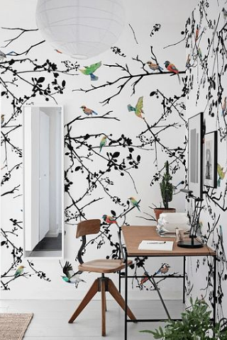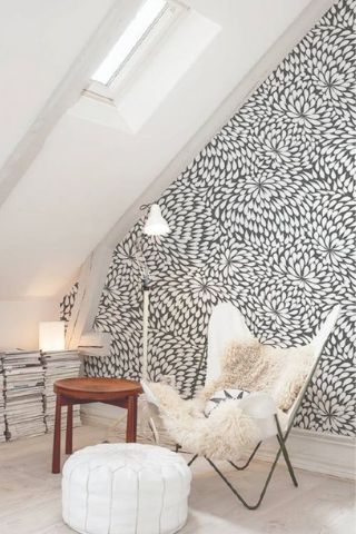 Il convient de bien l’associer au reste de la décoration. Si le papier peint est noir et blanc, il sera préférable d’opter pour des touches colorées dans le reste de la décoration ou des matériaux bruts comme le bois.
