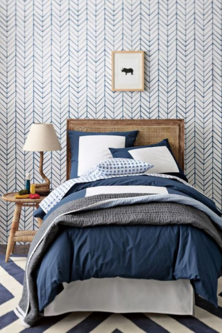 Pour donner de la hauteur à une pièce trop basse sous plafond, rien de mieux que le papier peint chevrons. Ces motifs graphiques donneront l’impression de repousser le plafond. Ce papier peint est très prisé pour une décoration au style scandinave qui se caractérise par des formes épurées et des tons pastels. Associé à des matériaux bruts comme le bois ou la pierre, votre intérieur sera moderne et paraîtra plus grand.
