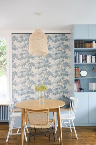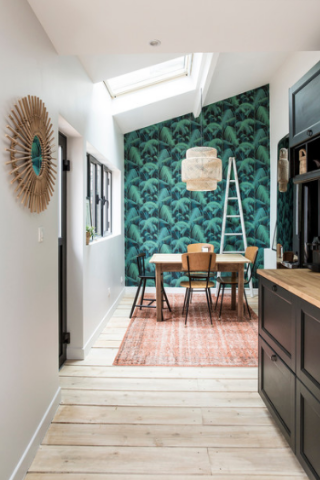 Grâce à celui-ci, vous permettrez de distinguer la fonction de chaque pièce. Dans un espace repas par exemple, il pourra être judicieux d’apposer au mur un papier peint géométrique pour démarquer cette partie du reste de la pièce.
