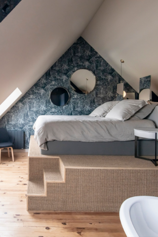 Si vous disposez d’une pente sous le toit, il ne faut surtout pas hésiter à la mettre en valeur. Pour ce faire, vous pouvez installer sur ce mur un papier peint qui créera une ambiance unique.