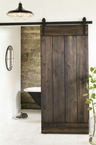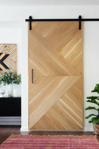 Pour le bois, vous avez l’embarras du choix au niveau des styles : bois ou foncé, brut, avec des motifs chevrons ou en diagonale… Vous pouvez jouer à fond le côté récup en osant la porte de grange, tout votre intérieur sera ainsi mis en valeur.